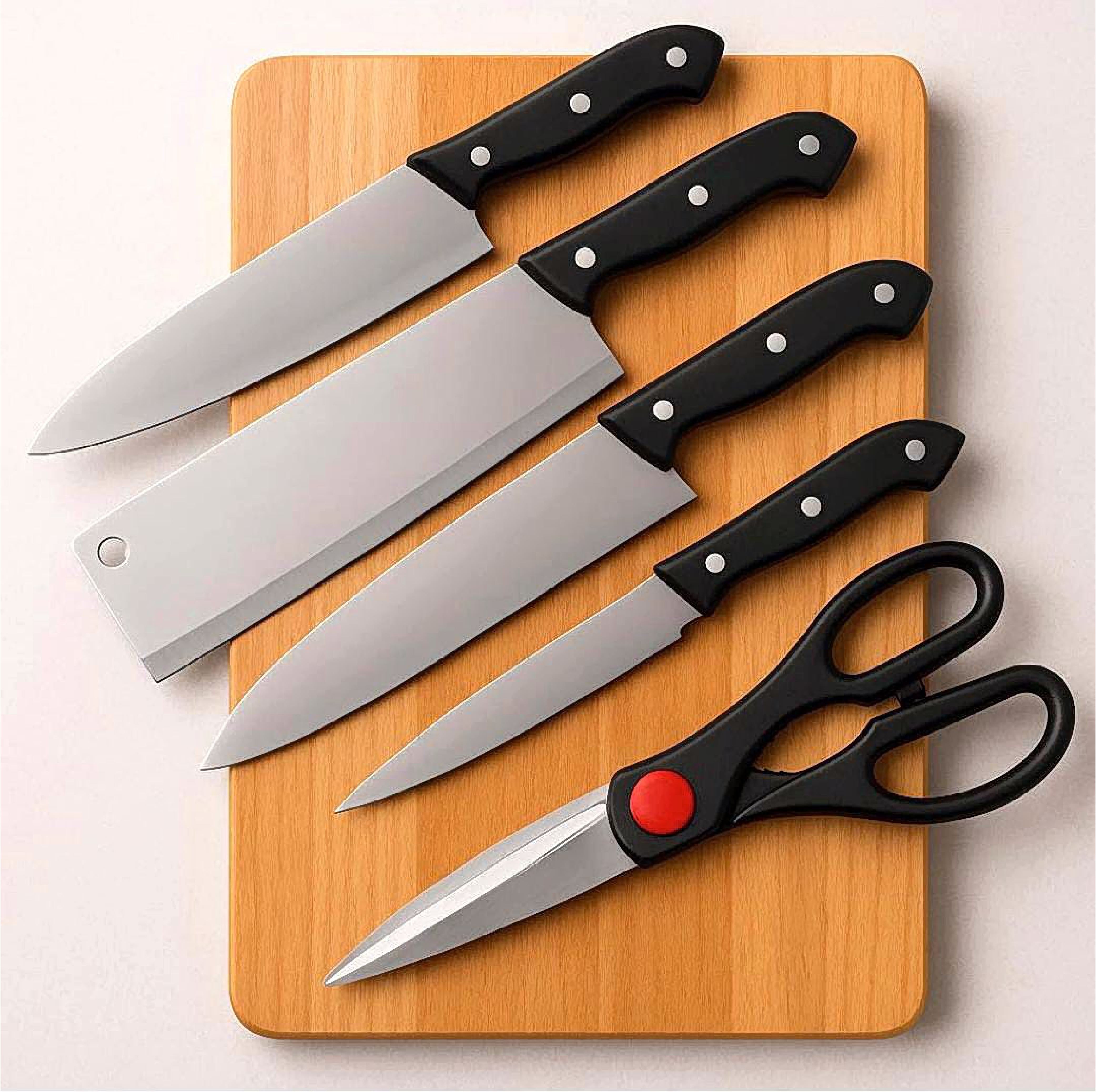 Wooden Chopping Board with Knife Set